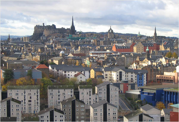 Edinburgh, vue à partir du pied d'un escarpement appelé Salisbury Crags (voir photo suivante)